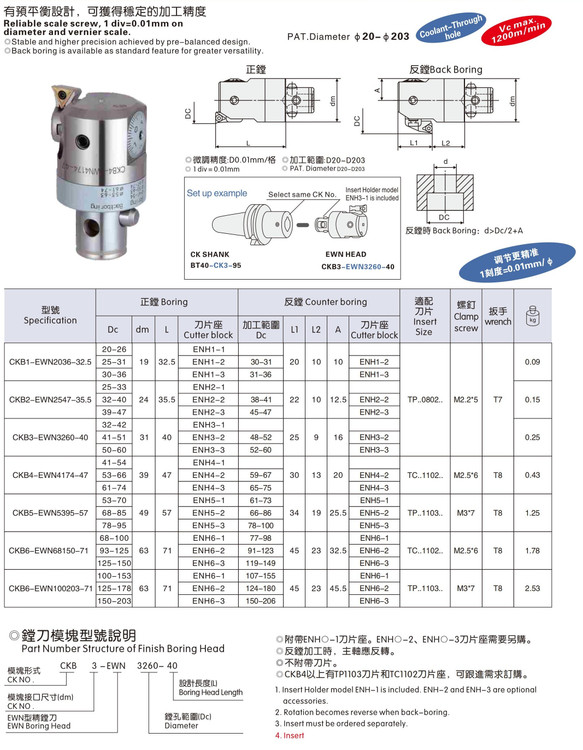 این ابزار منحصر به فرد از لحاظ قیمت و کیفیت این امکان را به شما میدهد تا با کمترین هزینه و سرعت عمل بالا اندازه نهایی خود را روی قطعه کار بدست اورید . این هد بورینگ دارای ورنیه تا دقت 0.01 میلی متر میباشد. بسیار راحت قابل تنظیم است و هر اپراتوری براحتی با ان کار میکند . اصطلاح lbkبه نوع دنباله این ابزار گفته میشود این ابزار ال بی کا یک میباشد در جدولی که برای شما نمایش داده است میتوانید دیگر مشخصات این هدبورینگ را ملاحظه کنید این ابزار به همراه کارتیجهای اضافی قابلیت افزایش قطر را به ابزار میدهد و براحتی قابل تعویض است . زمان سفارش میتوانید کارتریجها را از از طیق پیام یا تماس تلفنی سفارش دهید . انواع دنباله انواع واسطه sk40-bt40 برای افزایش طول این ابزار ها نیز در فروشگاه موجود میباشد .