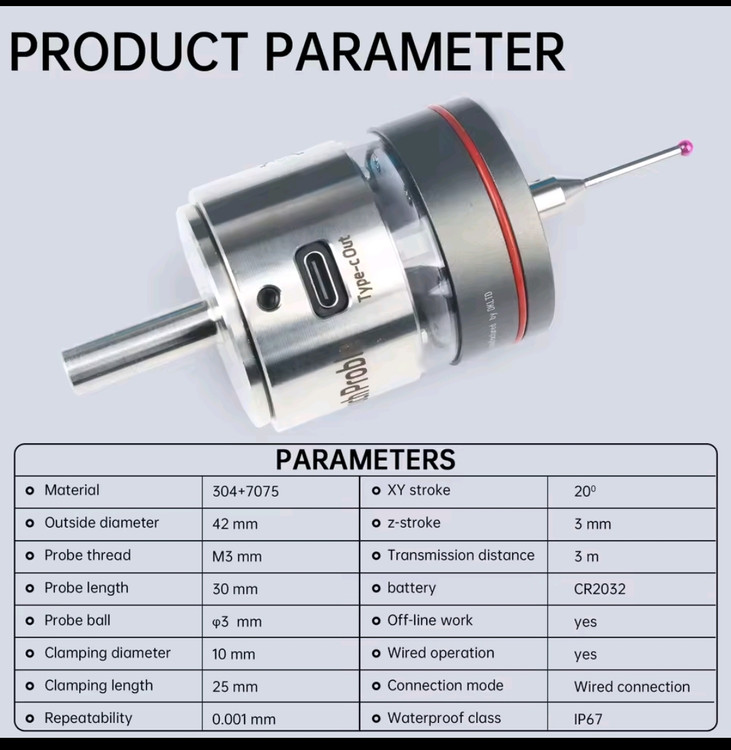 ضد آب: این پروب لمسی سهبعدی حرفهای دارای طراحی جامع ضد آب و ضد گرد و غبار است که عملکرد آسان و ایمن را تضمین میکند. ساختار مستحکم آن، طول عمر و قابلیت اطمینان را افزایش میدهد و محیط کاری امنی را برای کاربران فراهم میکند.