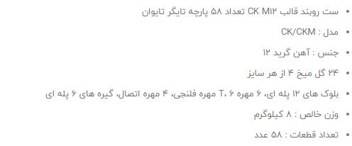 ست روبند قالب M12 تعداد پارچه 58 عدد